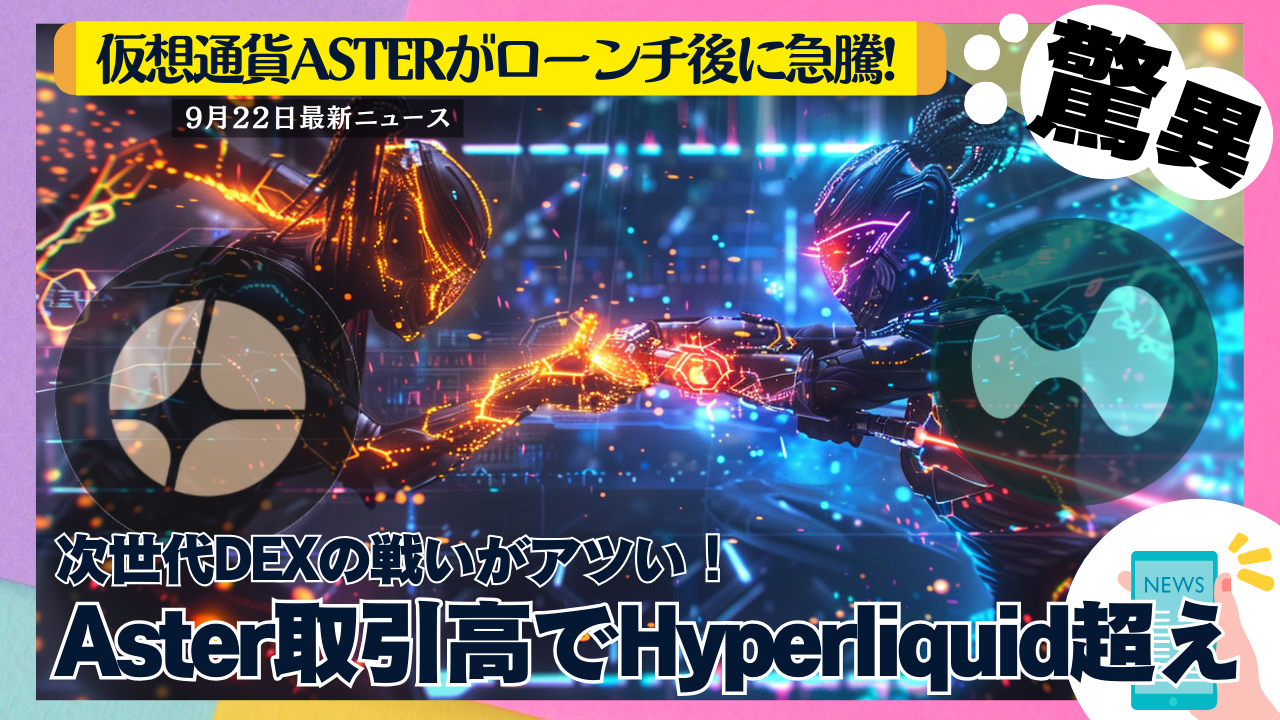 9月17日にトークンローンチした分散型取引所(DEX)「Aster」の独自トークンASTERが、わずか5日で約1,800%の驚異的な急騰を記録しています。バイナンス創業者のCZ(チャンポン・ジャオ)氏からの支持表明により、仮想通貨(暗号資産)市場で大きな注目を集めており、永続先物DEX市場の新星として注目されています。