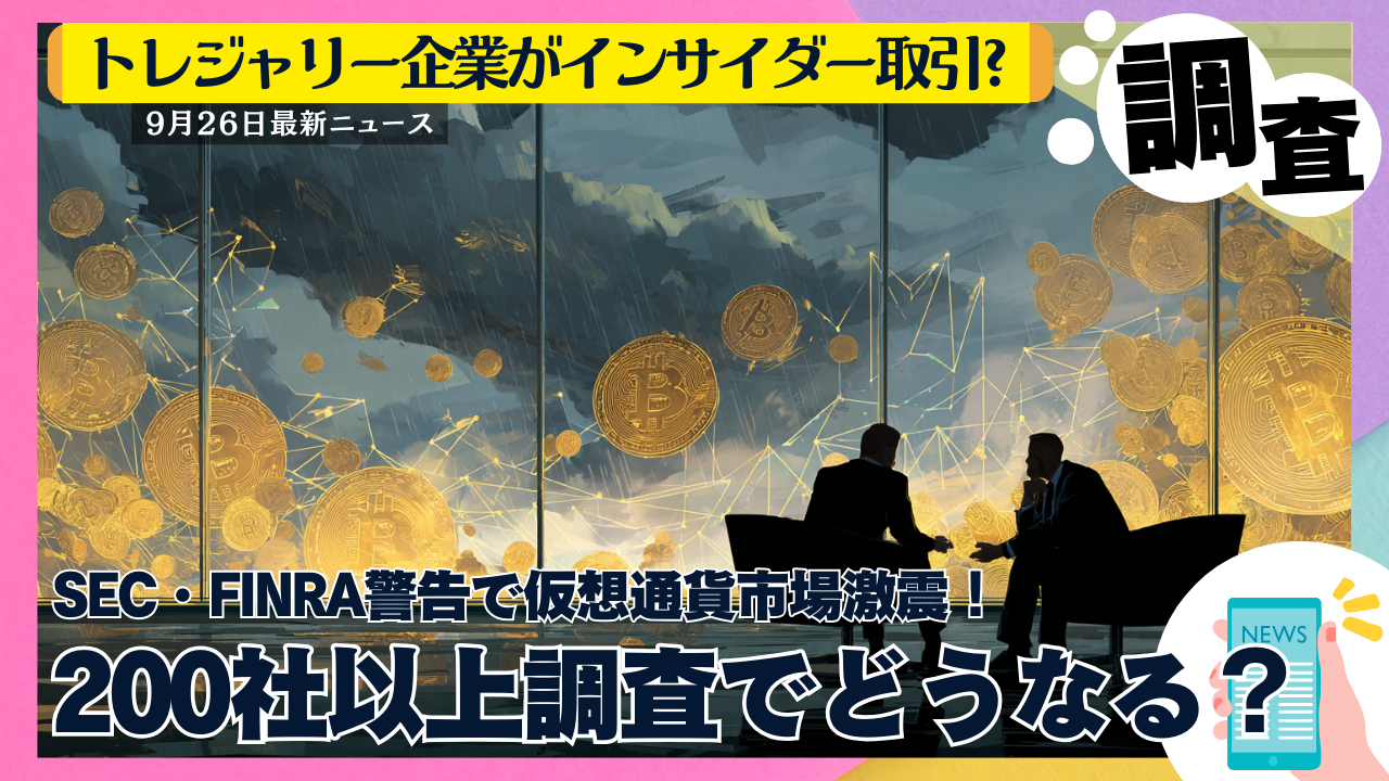 仮想通貨(暗号資産)界に激震が走っています。米国証券取引委員会(SEC)と金融業界規制機構(FINRA)が、200社を超える仮想通貨トレジャリー企業に対してインサイダー取引の疑いで調査を開始したと複数メディアが報じました。この衝撃的なニュースは、単なる規制強化にとどまらず、今後の仮想通貨市場の価格形成メカニズムそのものを大きく変える可能性があります。