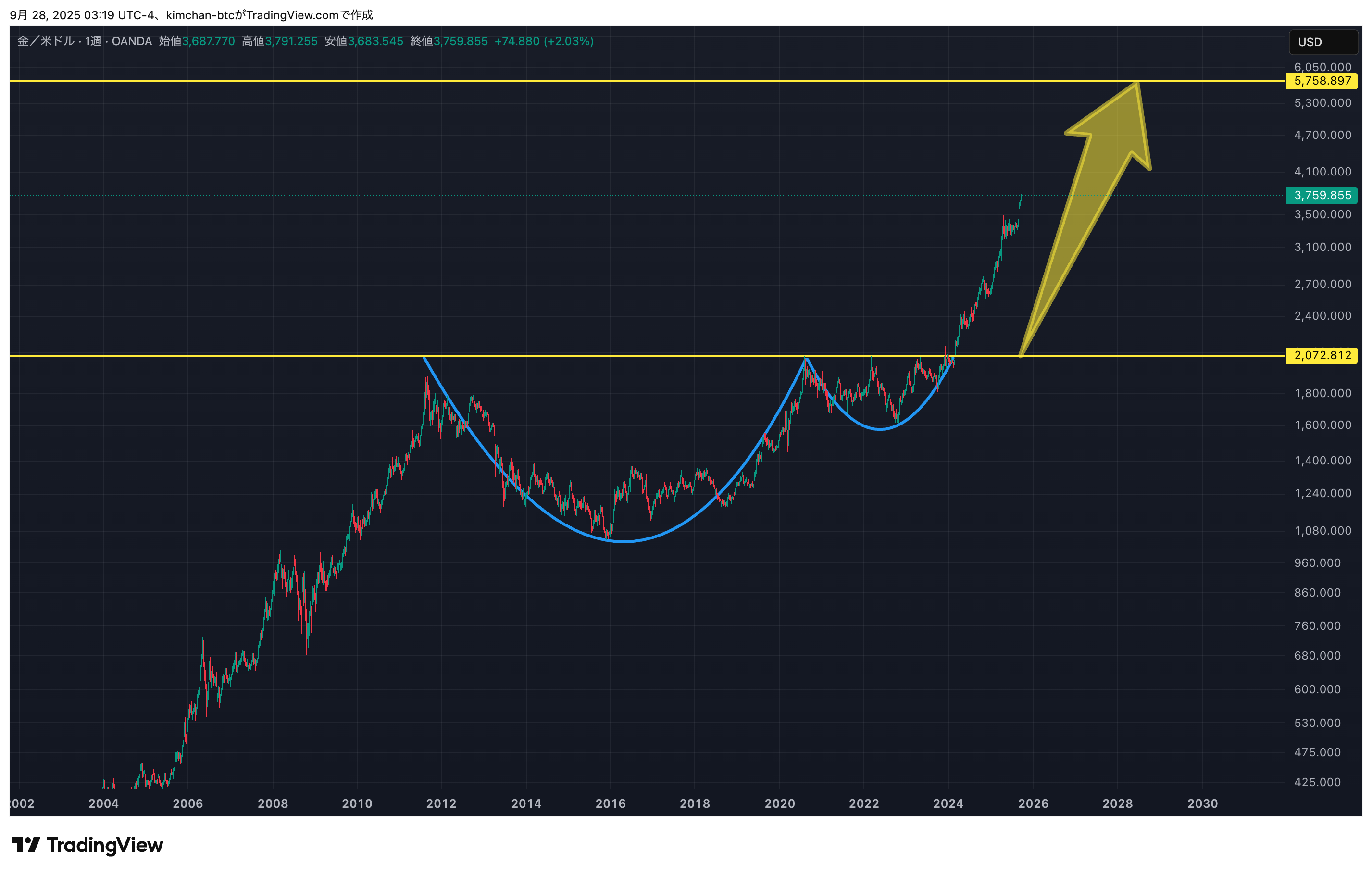 ゴールドは史上最大の上昇相場へ?カップ・ウィズ・ハンドル完成でターゲットは5758ドル