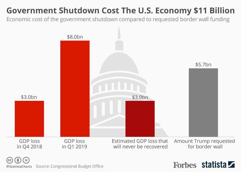 ところが、対立の結果、経済の落ち込みは合計110億ドル――壁の費用の約2倍に。