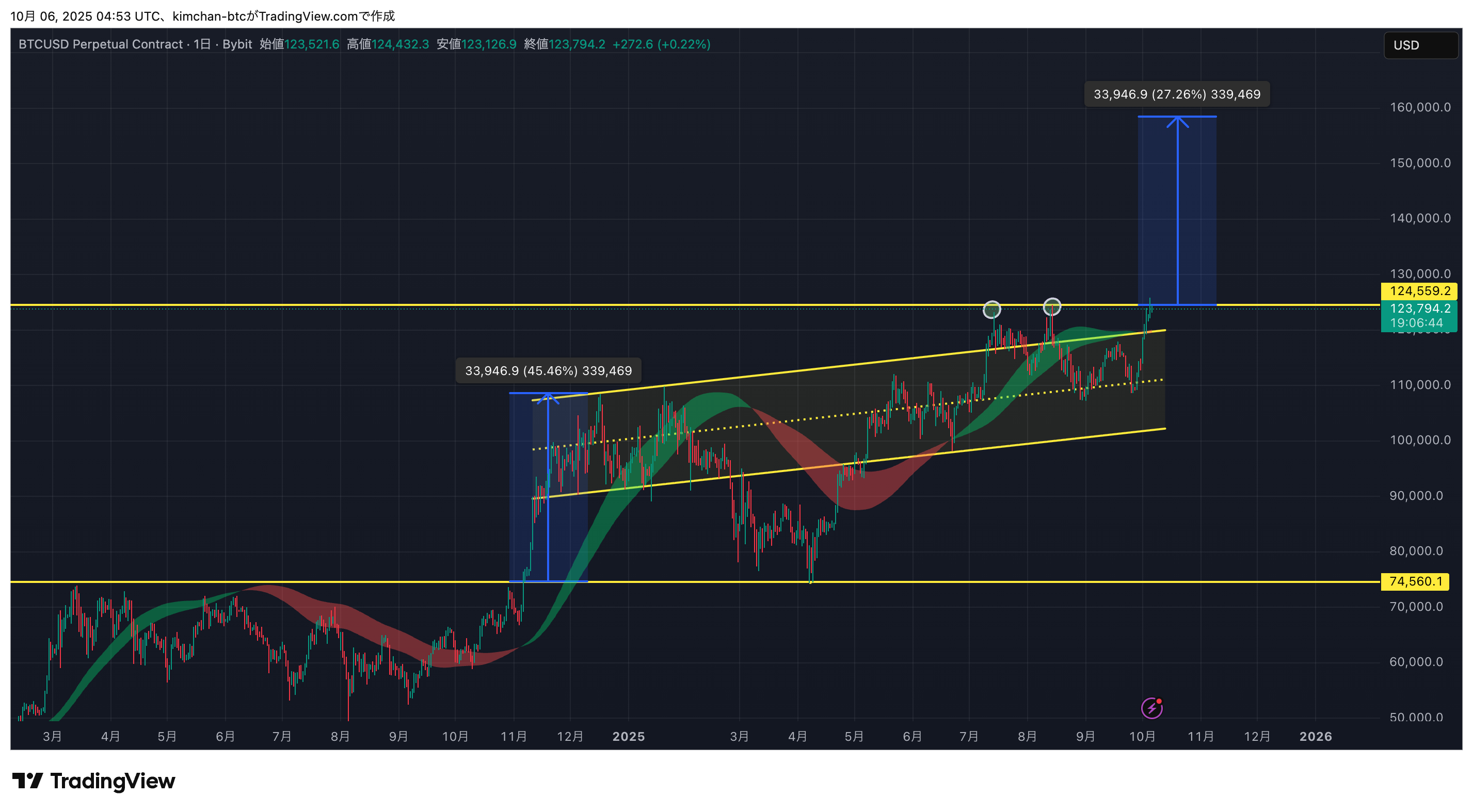 10月5日、ビットコインは8月14日の高値12万4,600ドルをついに上抜けました。