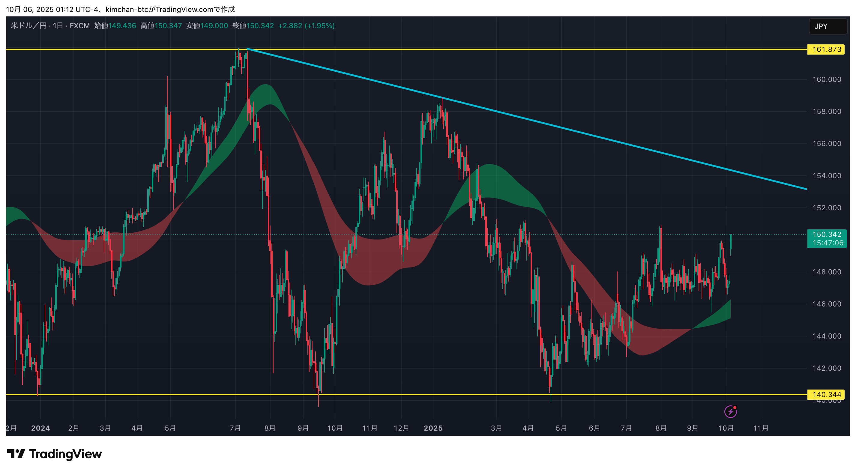 この突破により、長期チャートでは真空地帯(売り圧の薄い領域)へ突入した可能性が高まっています。