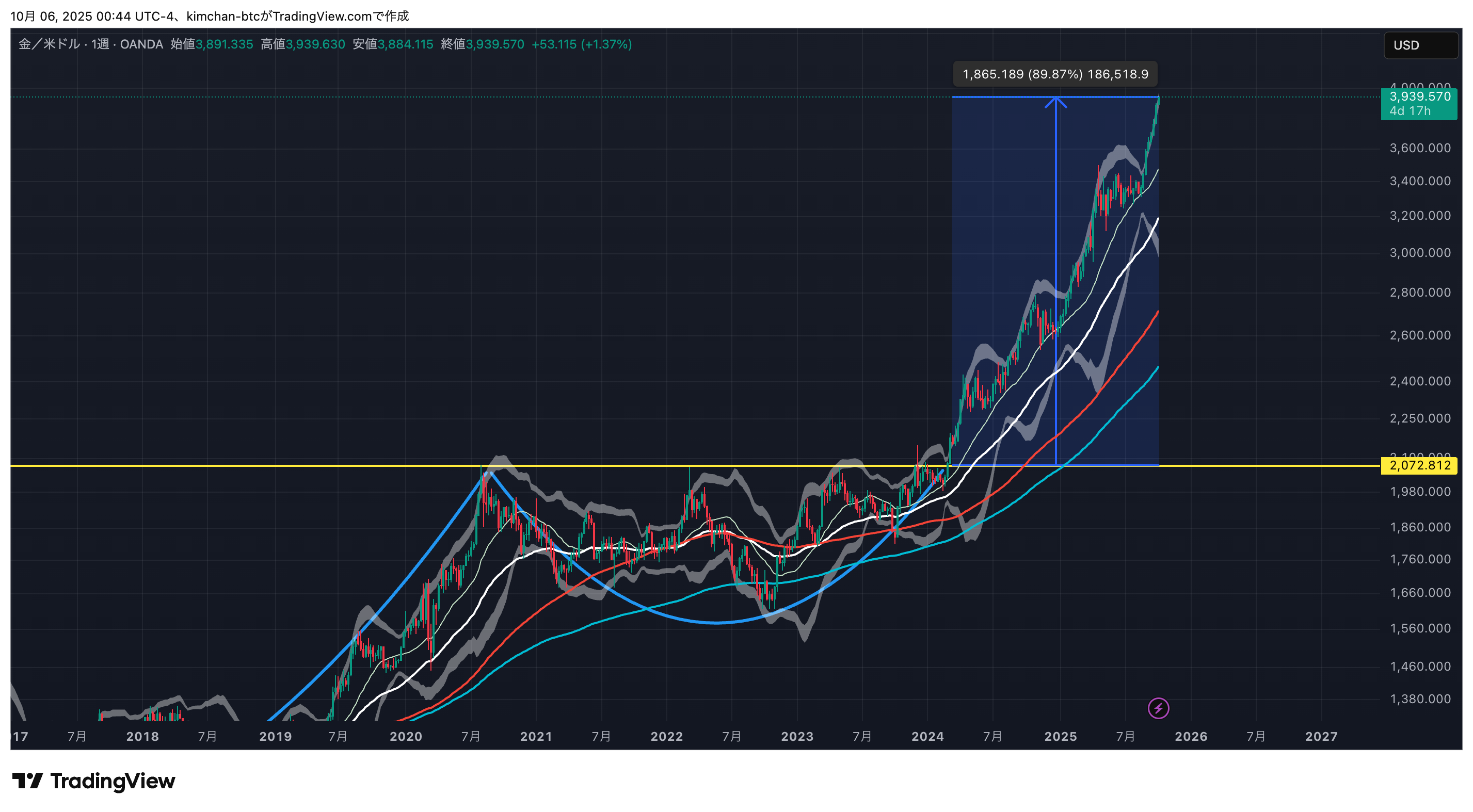 金(ゴールド)は2024年にレジスタンス突破後、約1年半で+90%上昇。
