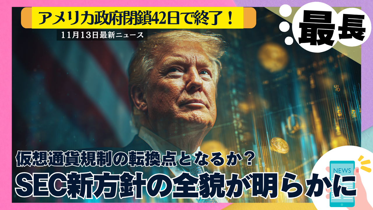 🇺🇸史䞊最長ずなった42日間の政府閉鎖が2025幎11月12日に正匏終了したした。トランプ倧統領の眲名により政府業務が再開され、停滞しおいた仮想通貚(暗号資産)政策が再び動き出したす。さらに同日、SEC委員長が瀺した「トヌクン分類䜓系」構想は、業界が10幎埅ち続けた芏制明確化ぞの倧きな䞀歩ずなる可胜性を秘めおいたす。
