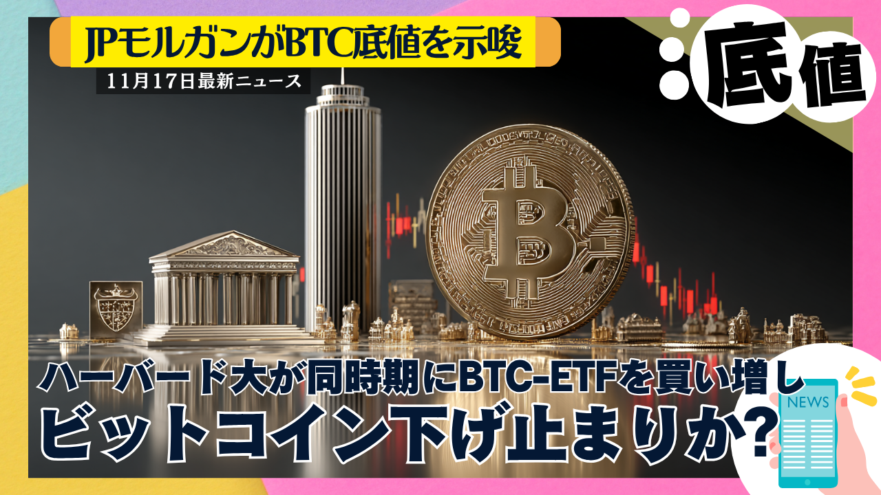2025年11月17日、JPモルガンが「ビットコインは底値圏に達した」と分析を発表し、同時にハーバード大学が前四半期比257%増という大幅な買い増しを行っていたことが判明しました。