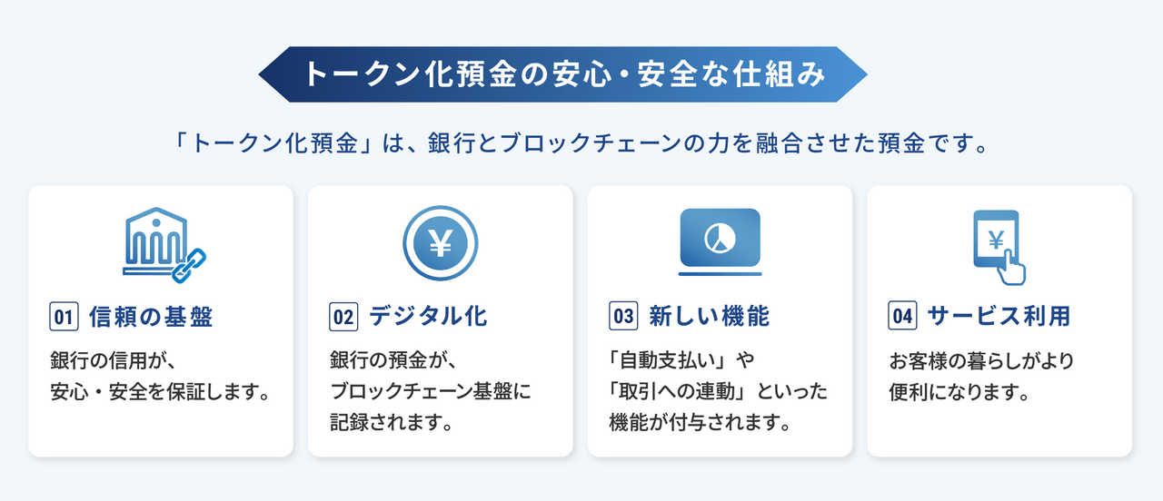 | ゆうちょ銀行 | トークン化預金の発行・管理 | 日本最大級の金融機関、約1億2,000万口座保有 |