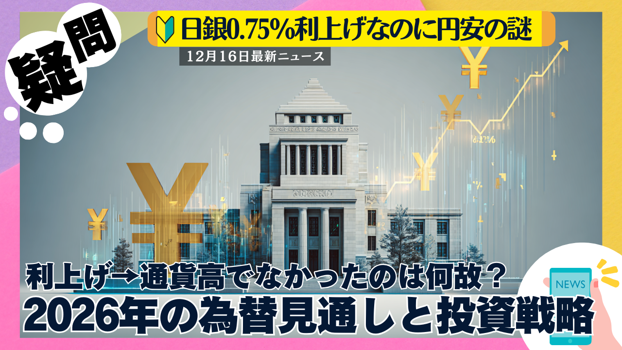 2025年12月19日、日本銀行は政策金利を0.5%から0.75%へ引き上げを決定しました。これは1995年9月以来、実に30年ぶりの高水準です。金融の教科書では「利上げすれば通貨高になる」と教わりますが、発表直後から円安が加速し、ドル円は157円台へ突入。市場では「なぜ利上げしたのに円安なのか?」という困惑の声が広がっています。利上げ前の12/13に記事にしましたが、今回の記事では、利上げ「決定後」の市場反応を中心に、植田総裁の12月19日記者会見の詳細、円安が進んだ理由、そして2026年の為替見通しと投資戦略を徹底解説します。
