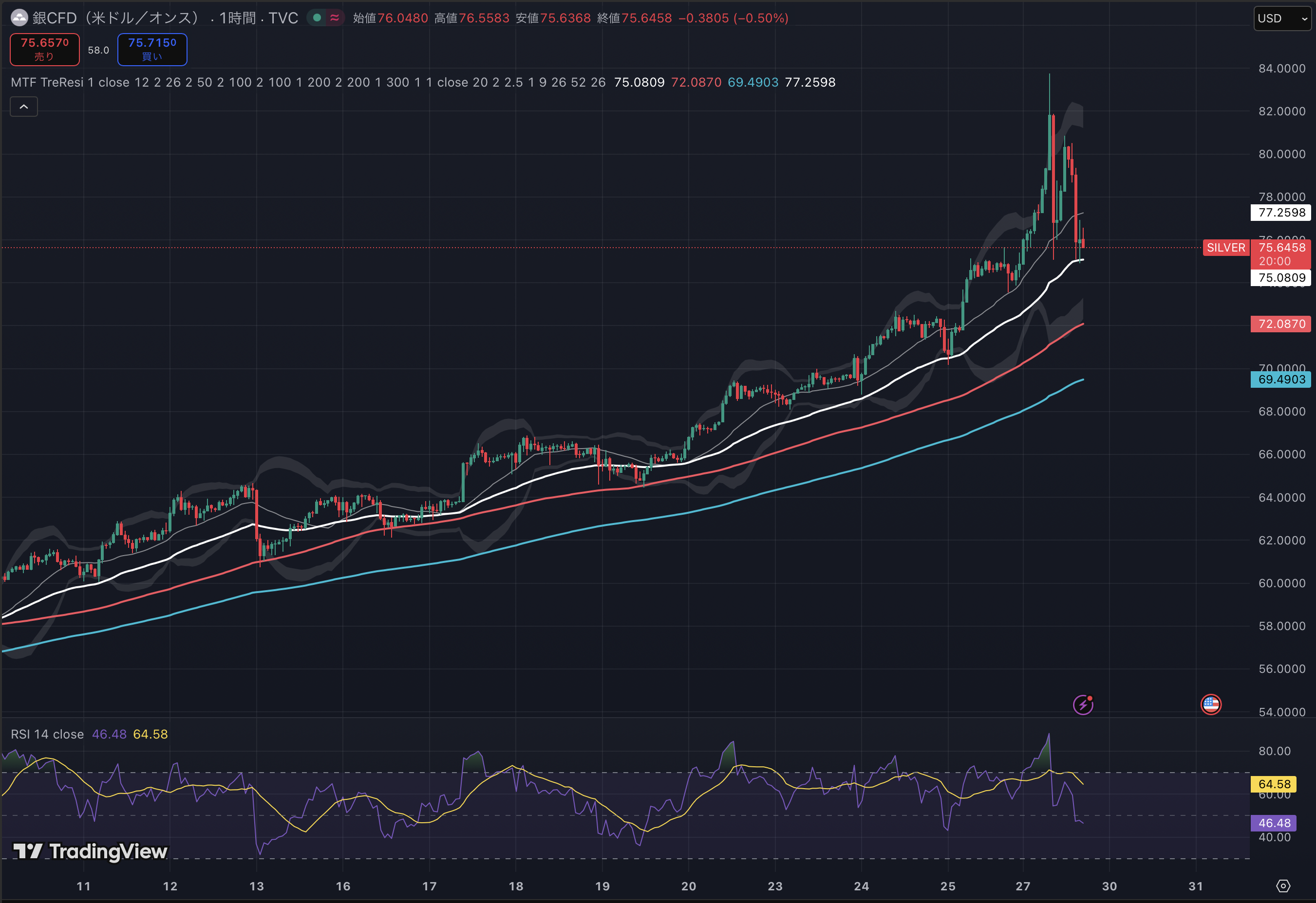 記事執筆中の2025年12月29日、銀(シルバー)市場で激しいボラティリティが発生しました。